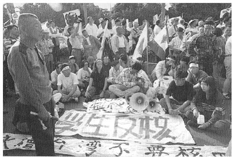 Communiqué No. 73, December 1996On 18 October 1996, the Kuomintang authorities in Taipei forced approval of the budget for the Fourth Nuclear Powerplant through the Legislative Yuan, while over ten thousand anti-nuclear demonstrators surrounded the Legislative Yuan building. The furious demonstrators burned a police vehicle and, in scenes reminiscent of the martial-law days, police turned water cannons on the crowd.